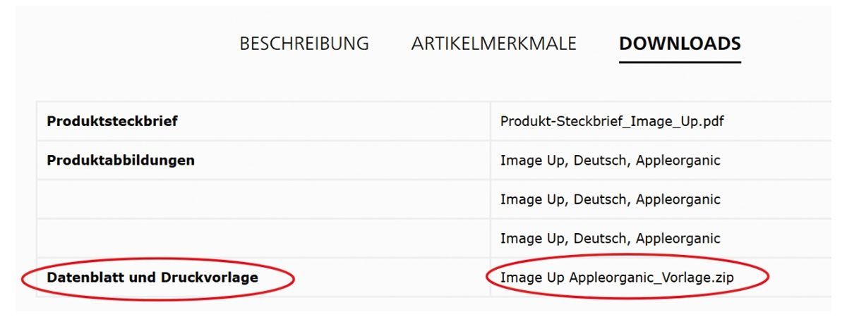 - Laden Sie die entsprechende Druckvorlage herunter (zu finden am Ende jeder Produktseite unter „Downloads“).