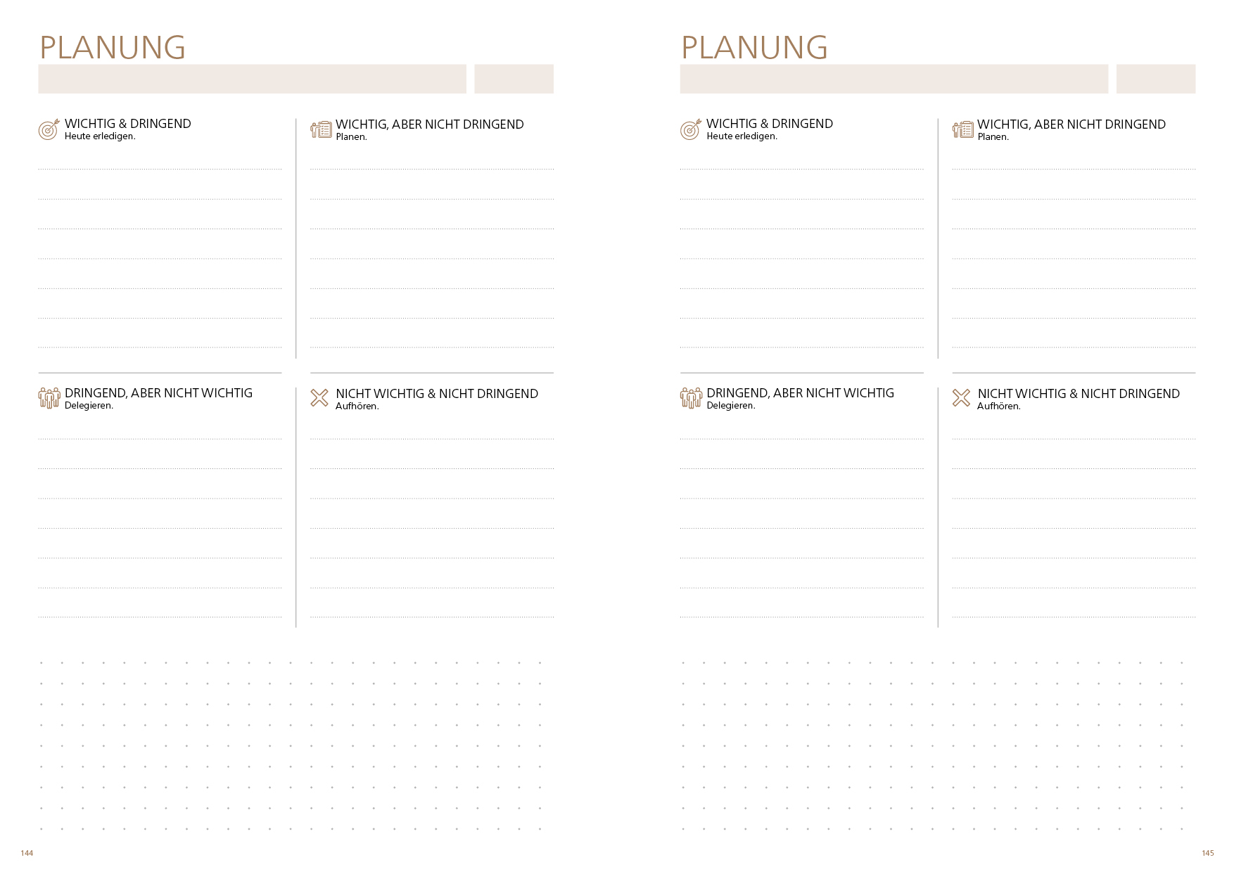 6 Seiten Eisenhower-Matrix mit Notizen