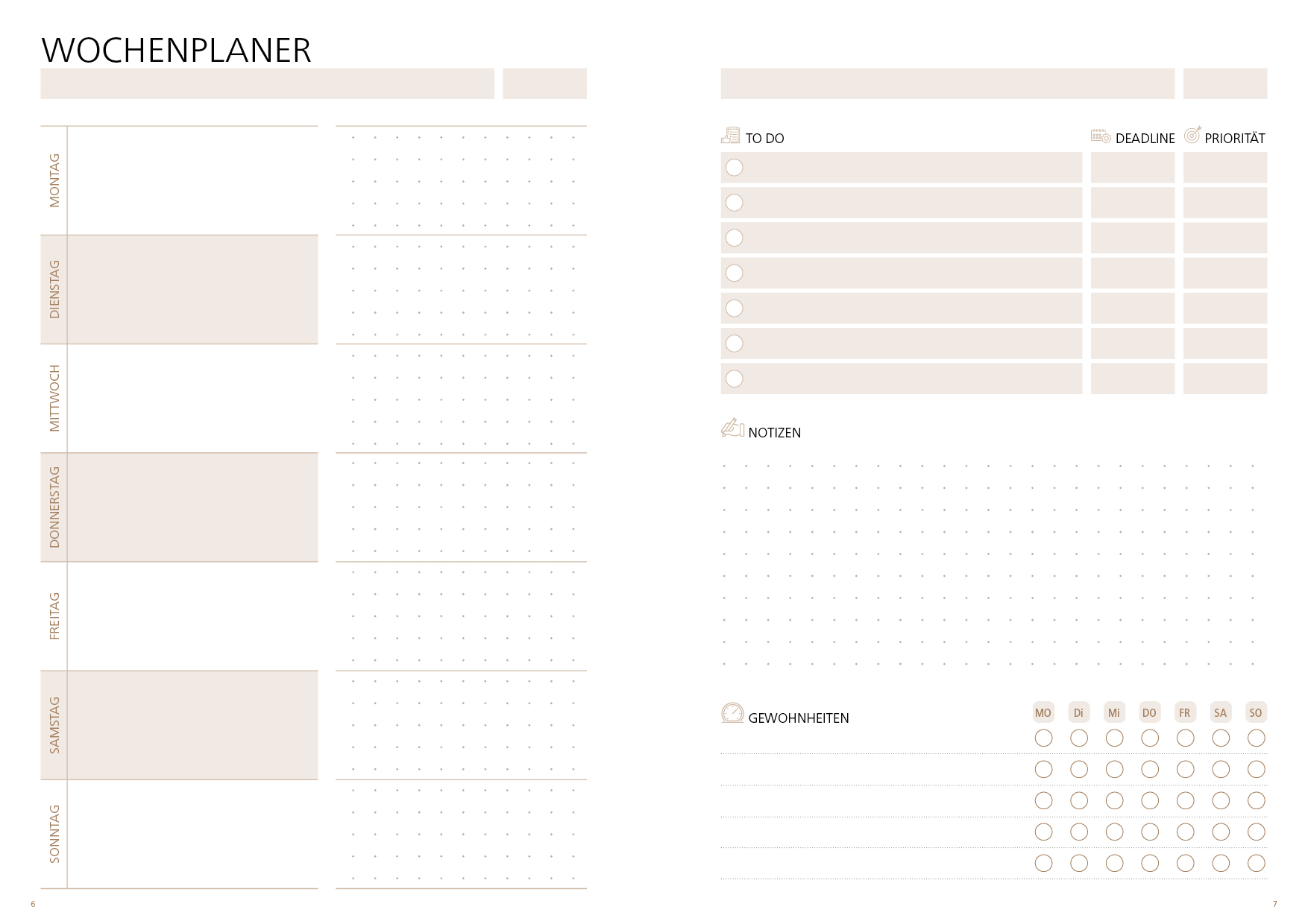 106 Seiten Wochenplaner: je Woche 2 Seiten mit To-do-Liste, Notizen und Habit-Tracker
