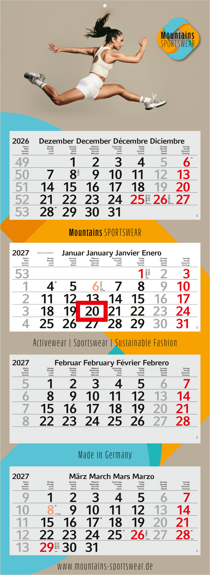 Der Profil 4 Bestseller ist ein praktischer und kostengünstiger Mehrblock-4-Monatskalender, der sich ideal für den Einsatz als Werbemittel eignet. Mit einem klaren viersprachigen Kalendarium, einer individuell bedruckbaren Rückwand und portooptimierter Verarbeitung kombiniert dieser Kalender Funktionalität und Werbewirkung. Hergestellt in Deutschland, überzeugt er durch Qualität und Effizienz.
