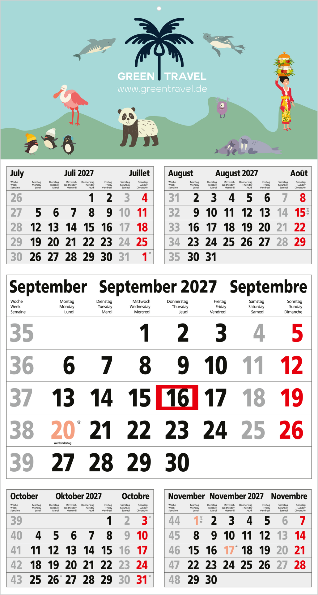Der Budget 5 Bestseller überzeugt als preiswerter 5-Monatskalender mit klarer Übersicht und modernem Design. Das dreisprachige Kalendarium (Deutsch/Englisch/Französisch) bietet fünf Monate im Blick und hebt Sonn- und Feiertage in kräftigem Rot (HKS 14) hervor. Mit einer großzügigen Werbefläche, die im 4C-Druck individuell gestaltet werden kann, und einem praktischen roten Datumsschieber ist dieser Kalender ein ideales Werbemittel. „Made in Germany“ – funktional und hochwertig.