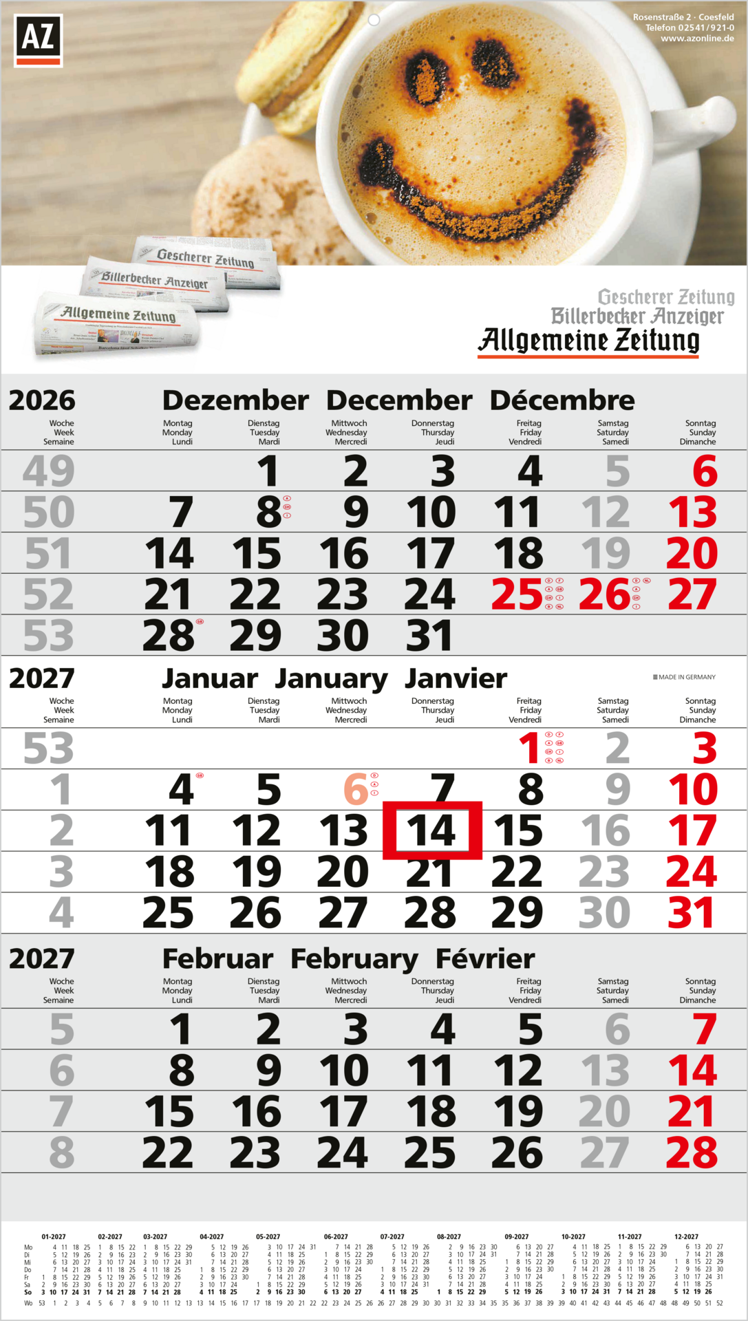 Der Primus 3 Post A Bestseller ist die perfekte Lösung für Unternehmen, die einen funktionalen und portooptimierten 3-Monatskalender suchen. Mit einer faltbaren Rückwand, perforierten Kalenderblättern und einem integrierten Jahreskalendarium bietet dieser Kalender maximale Effizienz. Seine großzügige Werbefläche ist individuell gestaltbar, während das moderne Design Übersichtlichkeit garantiert. „Made in Germany“, verbindet der Primus 3 Post A Bestseller Qualität mit Wirtschaftlichkeit.