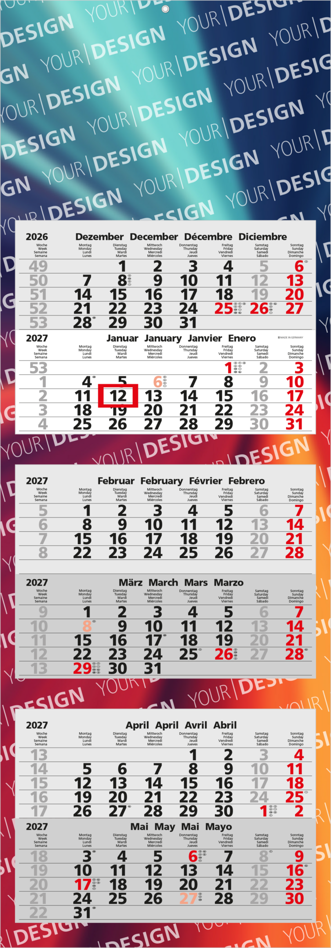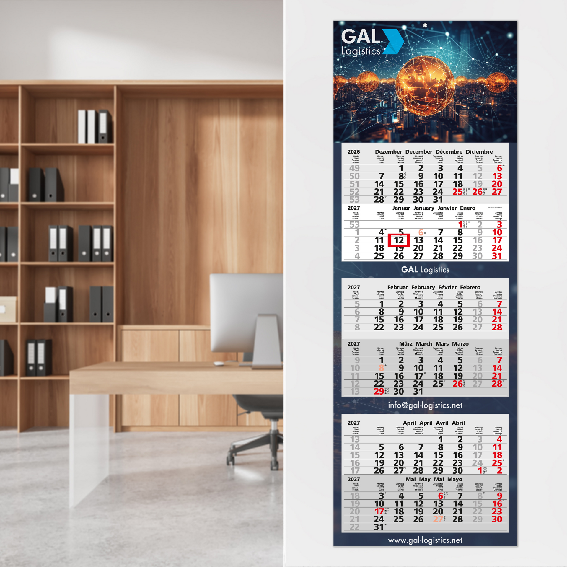 Der Synergy 6 überzeugt als innovativer 6-Monatskalender mit einer klaren und effizienten Darstellung von zwei Monaten pro Kalenderblock. Mit seiner großzügigen Werbefläche und hochwertigen Verarbeitung bietet dieser Kalender vielseitige Möglichkeiten für eine effektive Markenkommunikation. Dank portooptimierter Verarbeitung ist er sowohl praktisch als auch werbewirksam. „Made in Germany“ – für Qualität und Zuverlässigkeit.