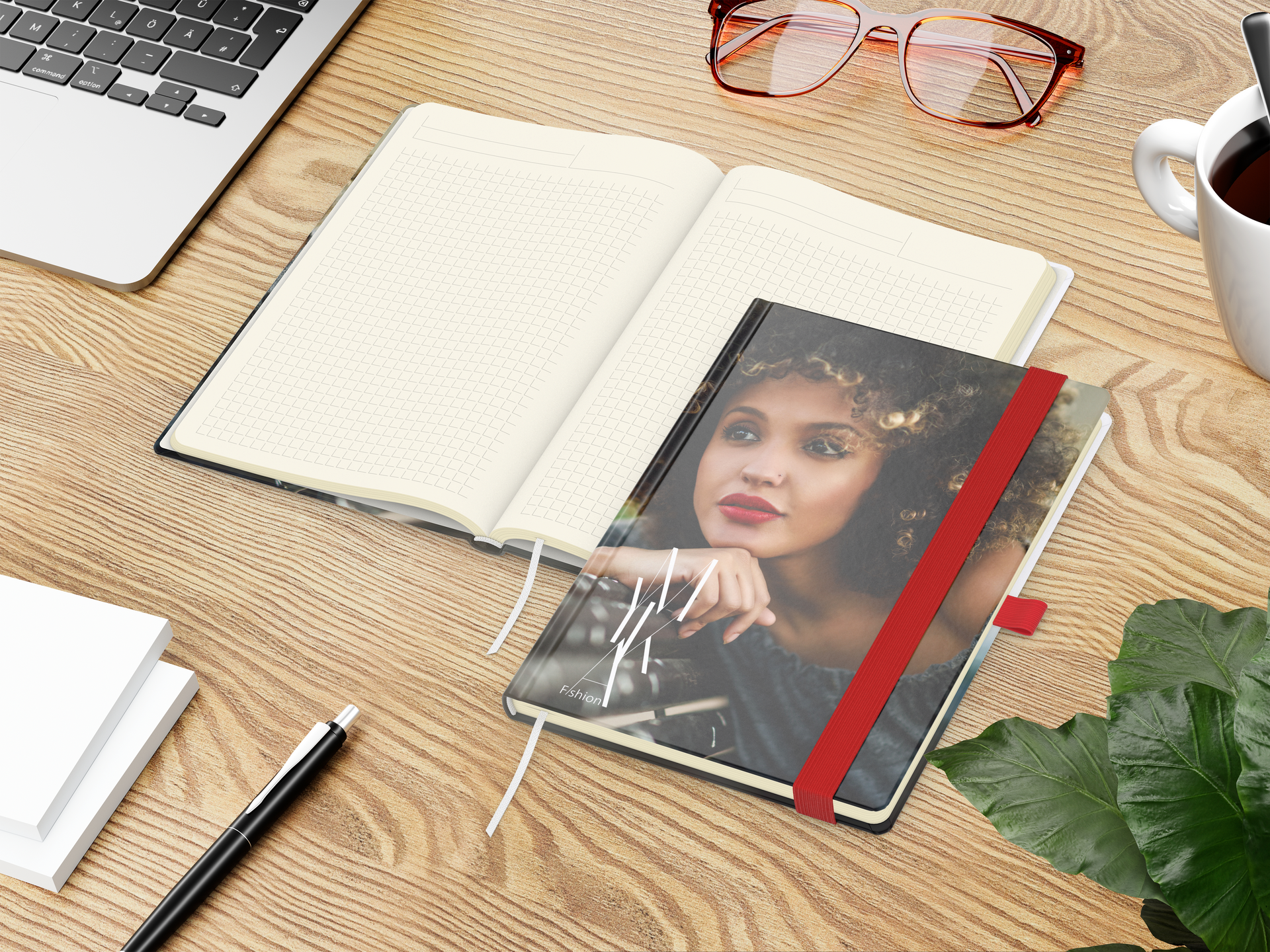 Das Match-Book Cover-Star Bestseller ist ein klassisches Business-Notizbuch mit hochwertiger Hardcover-Verarbeitung und umfassender Ausstattung. Es bietet viel Platz für Notizen und überzeugt durch seine langlebige Qualität sowie eine vollflächig nutzbare Werbefläche auf dem Einband.