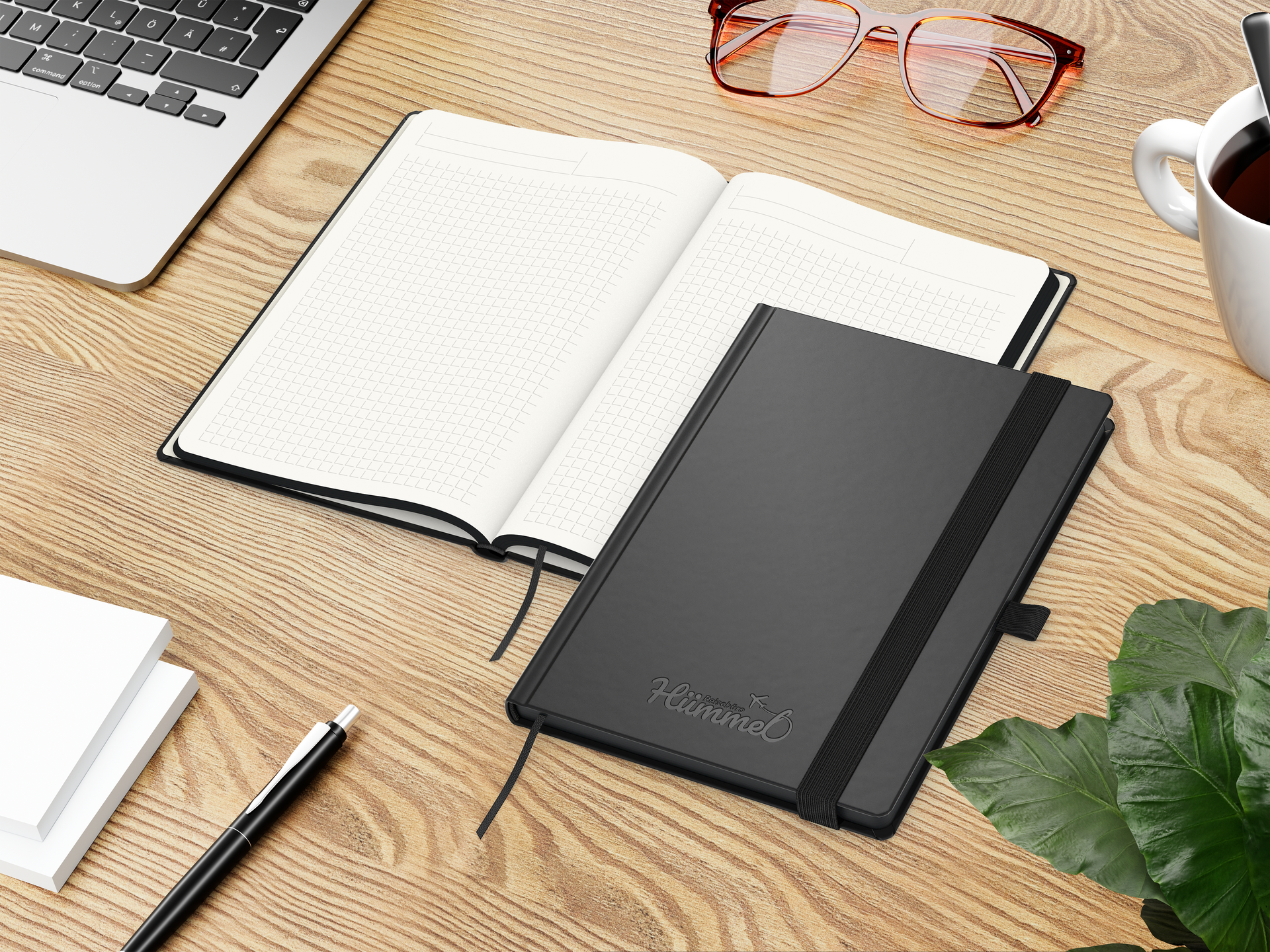 Das Black-Book ist ein Design-Business-Notizbuch im DIN-A5-Format mit Hardcover und schwarzer Vollausstattung. Es eignet sich als langlebiger Werbeartikel für Unternehmen, die ökologische Materialien mit einem klaren, professionellen Erscheinungsbild kombinieren möchten. Der Logo-Druck ist serienmäßig inklusive.