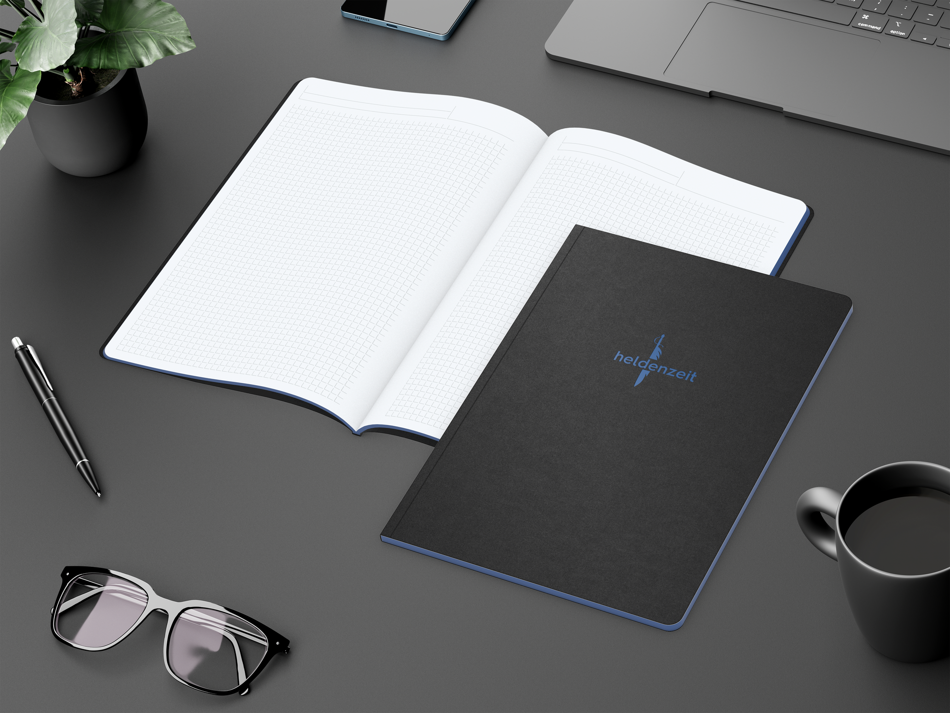 Das Tablet-Book ist ein kompaktes Business-Notizbuch im Broschurenformat und zählt zu den Bestsellern im Bereich der Werbeartikel-Notizbücher. Die Kombination aus reduziertem Umfang, Softcover und hochwertigem schwarzem Naturkarton verleiht dem Produkt eine moderne, designorientierte Anmutung. Der Buchblock besteht aus hochweißem Schreibpapier und ist mit Mikroperforation ausgestattet, wodurch sich Notizen sauber heraustrennen lassen. Abgerundete Ecken an Buchblock und Einband sowie der umlaufende Farbschnitt unterstreichen die hochwertige Verarbeitung. Der Logo-Druck ist bereits im Preis enthalten und erfolgt auf der vorgesehenen Werbefläche. Produziert in Deutschland eignet sich das Tablet-Book ideal als funktionaler und zugleich preisattraktiver Werbeträger für Business-Anwendungen.